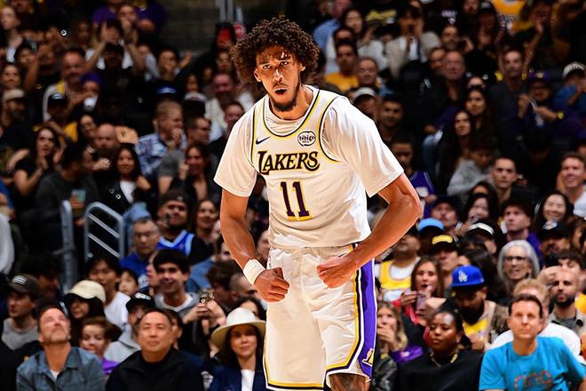 本场比赛中,顶替受伤的德安德烈-艾顿(DeAndre Ayton)作为球队先发中锋的贾克森-海斯(Jaxson Hayes)的表现算得上是相当不错。海斯全场出场32分24秒,投篮7中7,三分线外1中1,以100%的命中率拿下了15分5篮板1助攻1抢断1盖帽的数据,还有1次失误和3次犯规,正负值也是达到了全场最高的+17。海斯在进攻端简直是大杀四方,他展现出了相当不错的篮下得分能力和终结能力,他甚至还命中了一记三分,这也是他加盟湖人以来为球队命中了首记三分,这样的表现也是远远超出大家预期的。不仅如此,海斯在防守端也是起到了很好的效果,他也是帮助球队镇守住了内线。事实上,海斯在比赛第一节就直接拿到了11分,这也帮助球队建立起了领先优势,他也为球队的这场胜利做出了不小的贡献。